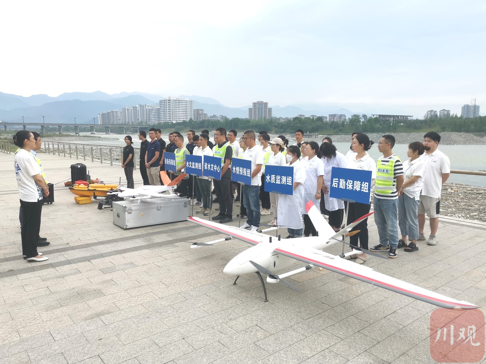 在当天的演练中,先后开展了应急响应机制、应急水文监测、应急水质监测等4项8个应急水文测报科目。成都水文中心工作人员现场采用了遥控船、无人机、水质监测应急车、雷达波流速仪等先进设备进行测流和水质分析,相关数据及时收集、传输、分析后,作为后方防汛决策部门的数据支撑。