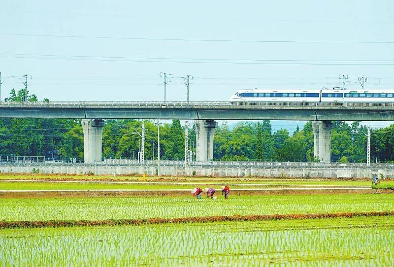 风吹稻浪,万物生长。5月24日,记者走进眉山市东坡区太和镇永丰村,目之所及皆是风景:延伸至公路边的稻田绿意葱茏,高铁从高架桥上呼啸而过,游客乘坐608路公交车来到田边,穿行阡陌间观光拍照;农田里,农户正抢抓农时育秧移栽……一幅农忙画卷在眼前徐徐展开。
