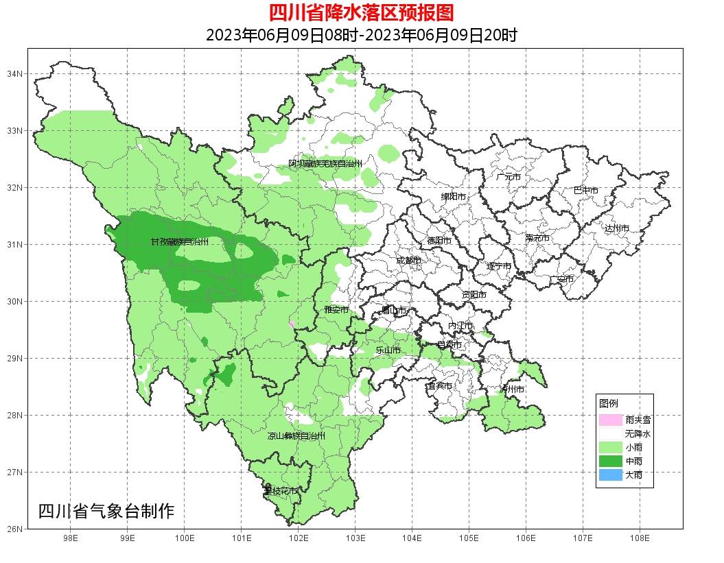 明天白天:盆地各市多云,其中雅安、乐山、宜宾、泸州4市早晚有阵雨或雷雨;川西高原和攀西地区阴天间多云有阵雨或雷雨,其中甘孜州中部有中雨。