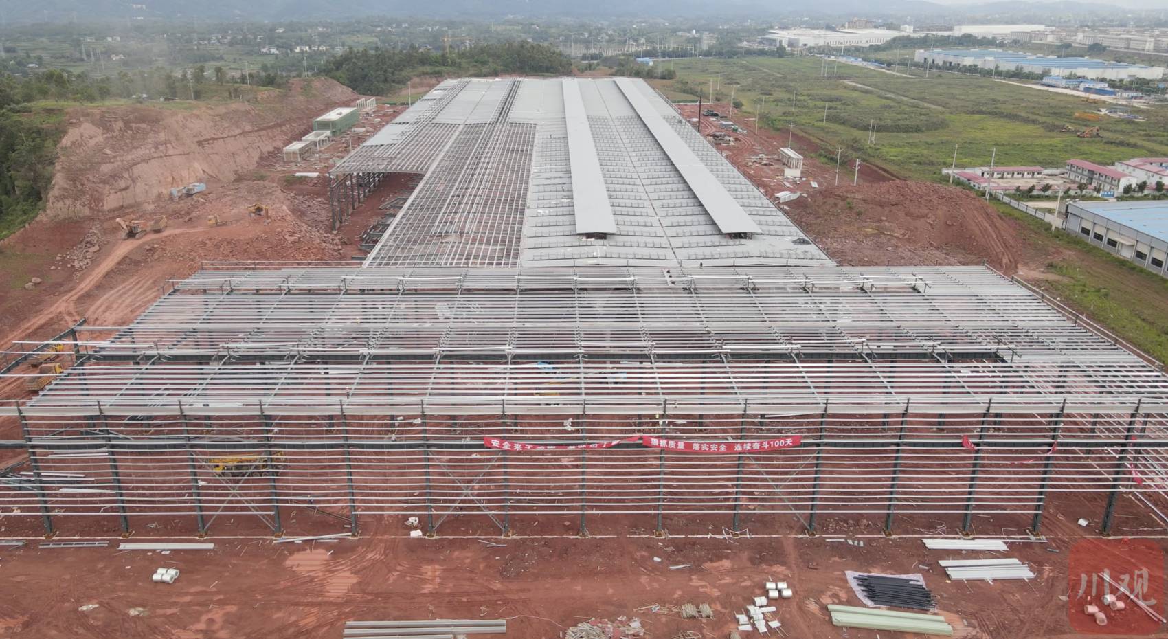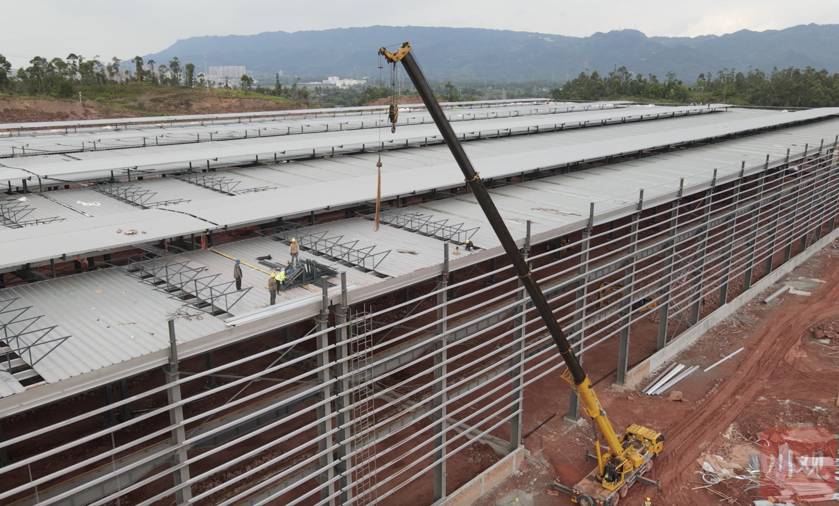 离开大雨中的万州,300多公里外的重庆大足则是艳阳高照,这里也有一个上届西博会上的签约项目——年产100万吨钢结构(装配式建筑)制造项目。