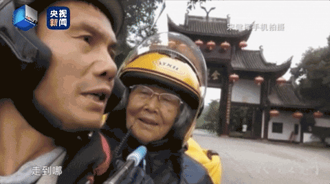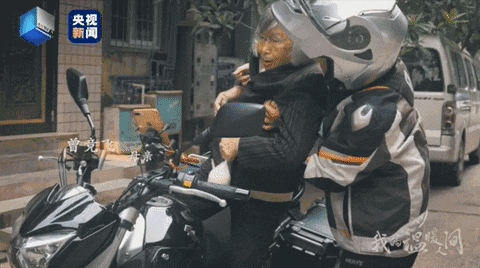 “老母亲,快点,这是给你的包子。”宋健挥边说边把母亲曾竞飞搀扶到摩托车上。像往常一样,这对母子又开始了他们的“摩托之旅”。