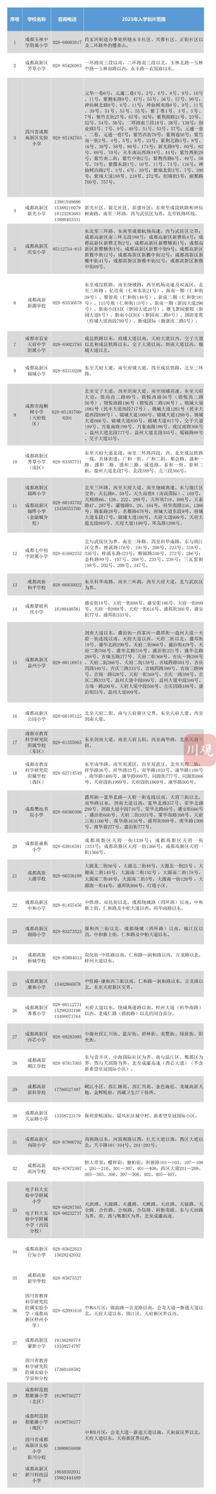 最新!2023年成都各区(市)县小一入学划片范围汇总