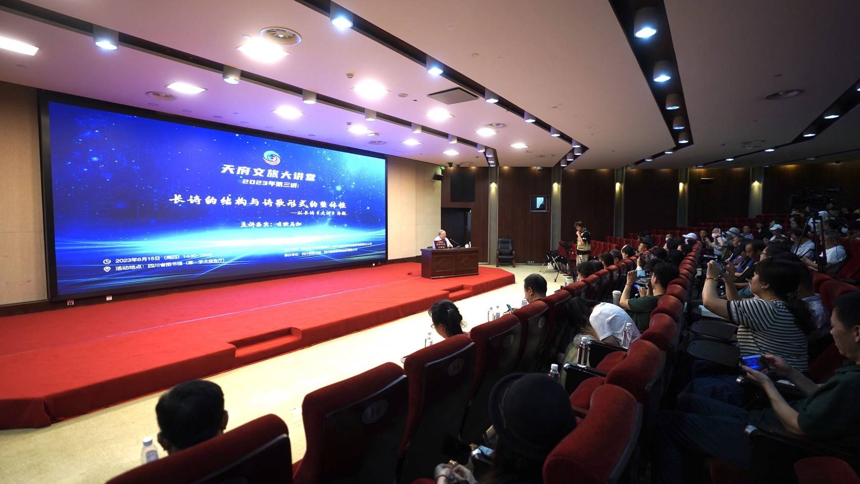6月15日下午,由四川省文化和旅游厅、四川省旅游投资集团有限责任公司主办的“天府文旅大讲堂”2023年第三讲在四川省图书馆举行,著名诗人、中国作家协会诗歌委员会主任吉狄马加以“长诗的结构与诗歌形式的整体性——以长诗《大河》为例”为题开讲。