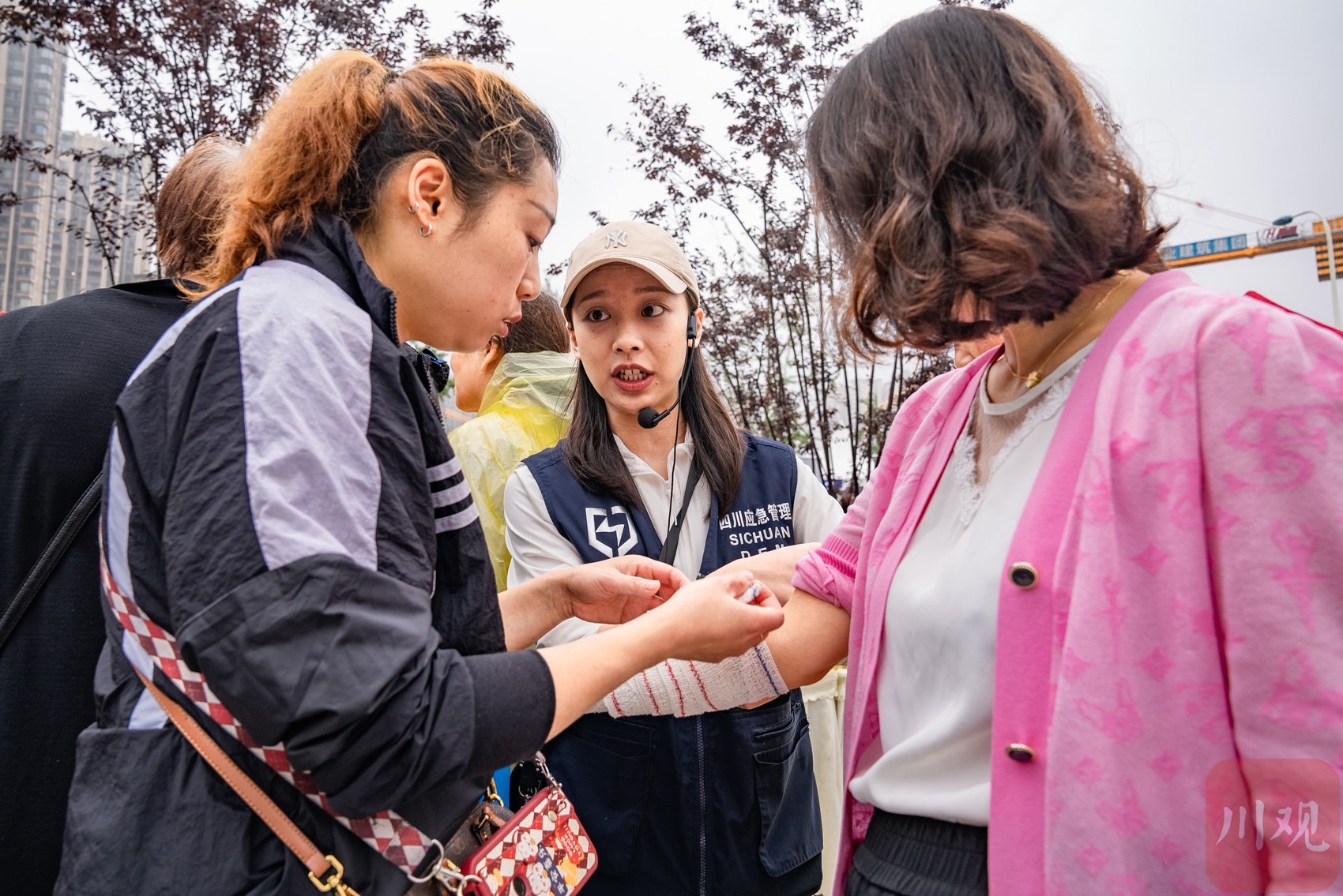 市民在学习止血包扎