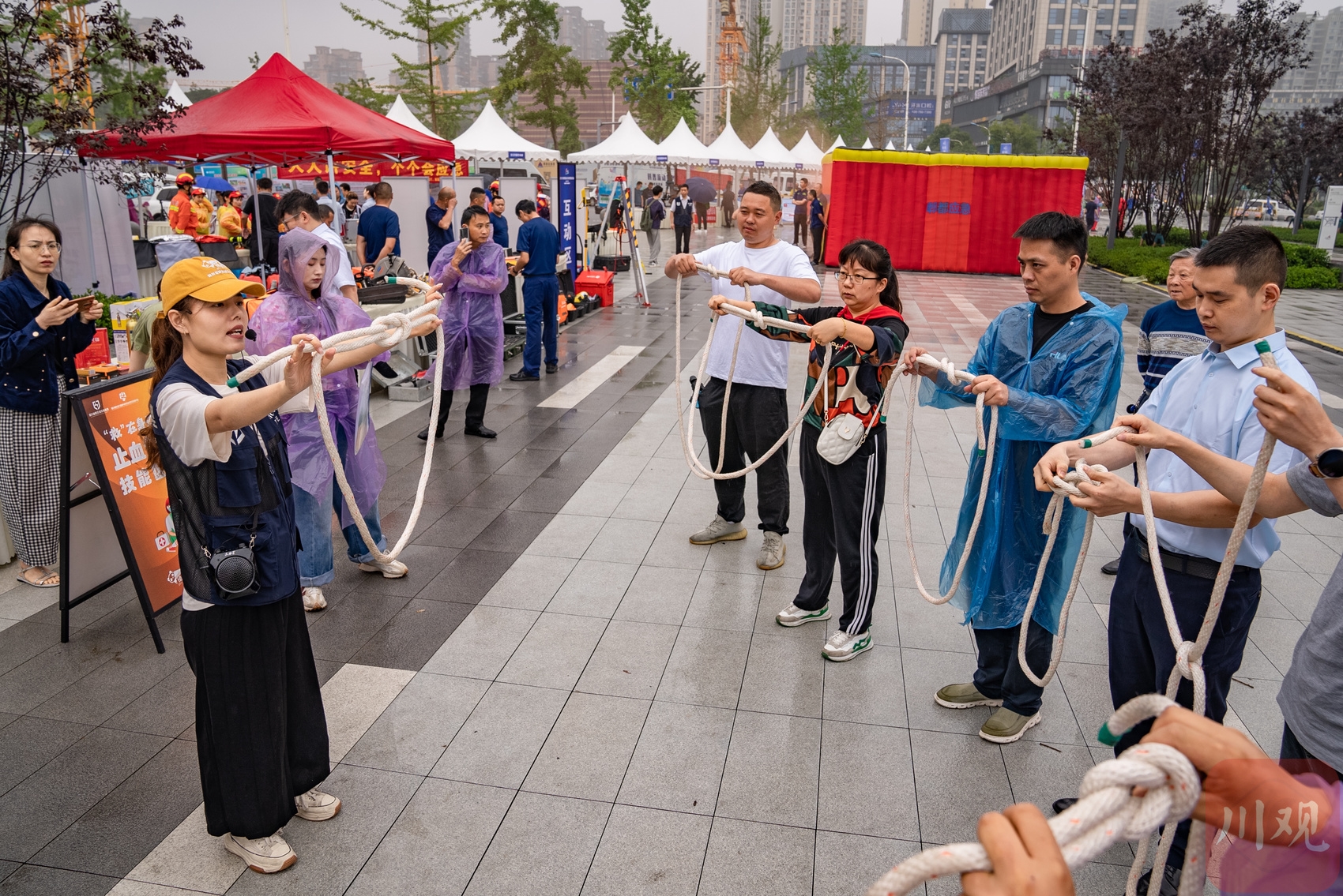 市民在学习绳索打结