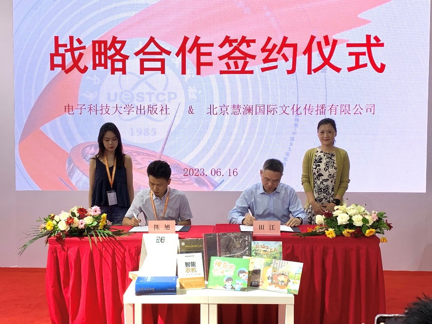 电子科大出版社与北京慧澜国际文化传播有限公司在四川出版展馆举行了战略合作签约仪式。正式宣布,未来,双方将在版权贸易、选题策划、项目申报等多个方面开展深入合作,共同探索国际市场,高质量高标准做好“走出去,引进来”工作,促进文化交流与传播。
