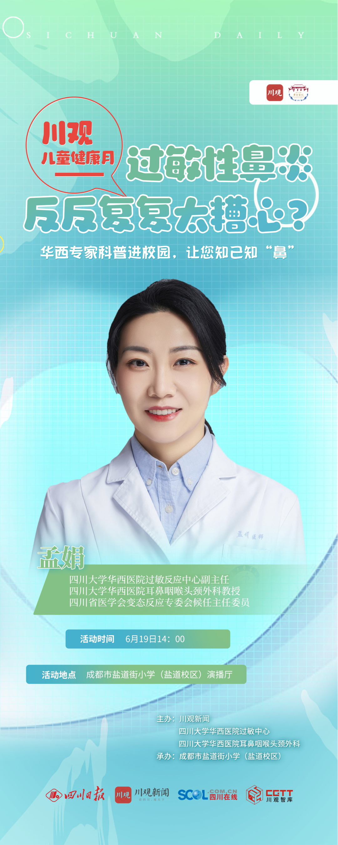 6月19日,“川观儿童健康月”特别主题活动第三站,川观新闻联合四川大学华西医院过敏反应中心、耳鼻咽喉头颈外科走进成都市盐道街小学(盐道校区)。