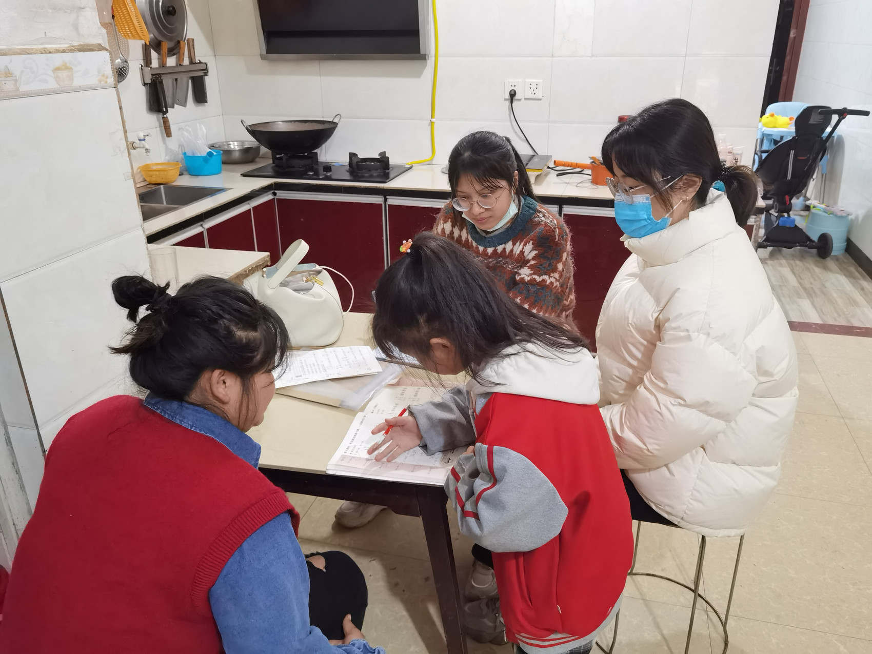 家访中的张媛(上中)。受访者供图