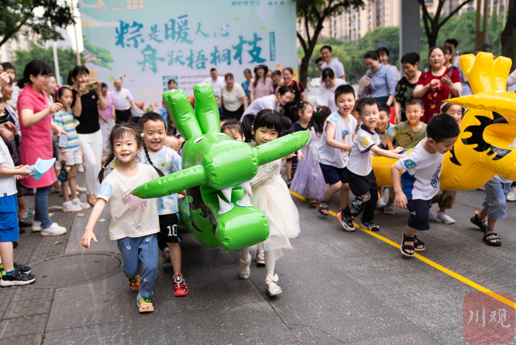 6月20日,成都市温江区涌泉街道凤凰社区举办端午主题活动。活动现场,欢笑声与呐喊声交织回荡,社区居民包粽子、小朋友体验旱地赛龙舟,感受传统民俗,丰富文化生活。