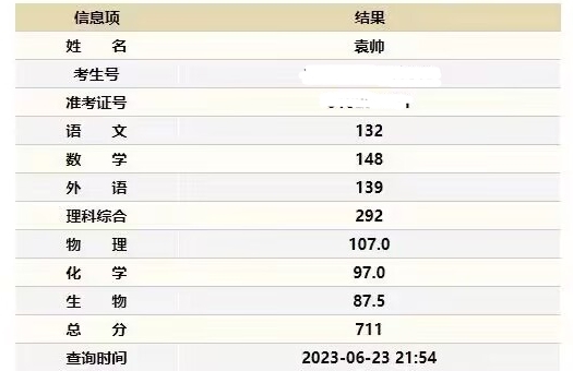 四川在线记者从成都树德中学获悉,该校考生袁帅取得了理科711分的优异成绩。袁帅同学的单科成绩分别为语文132分、数学148分、英语139分、理综292分。