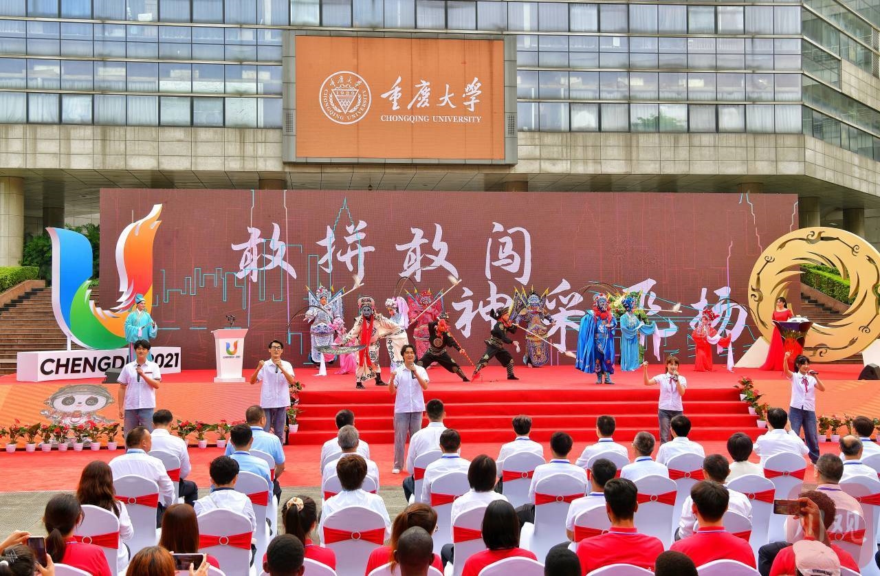 “我说成都雄起,三星堆里寻古迹;我说重庆雄起,白帝城头映诗意……”6月24日,重庆大学主教学楼前,随着成都大运会火炬传递重庆站启动,一曲重庆大学师生自编自导的《巴风蜀云》歌舞节目亮相,伴着大运之火,激情昂扬的精彩表演点燃全场热情。