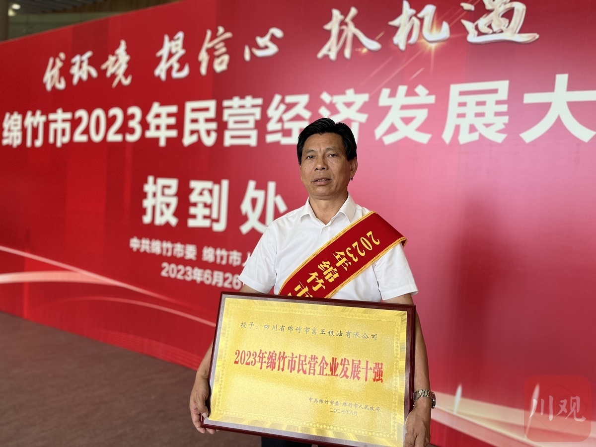 绵竹市富王粮油有限公司总经理王清富,当天富王粮油荣获“民营企业发展十强”。侯冲 摄