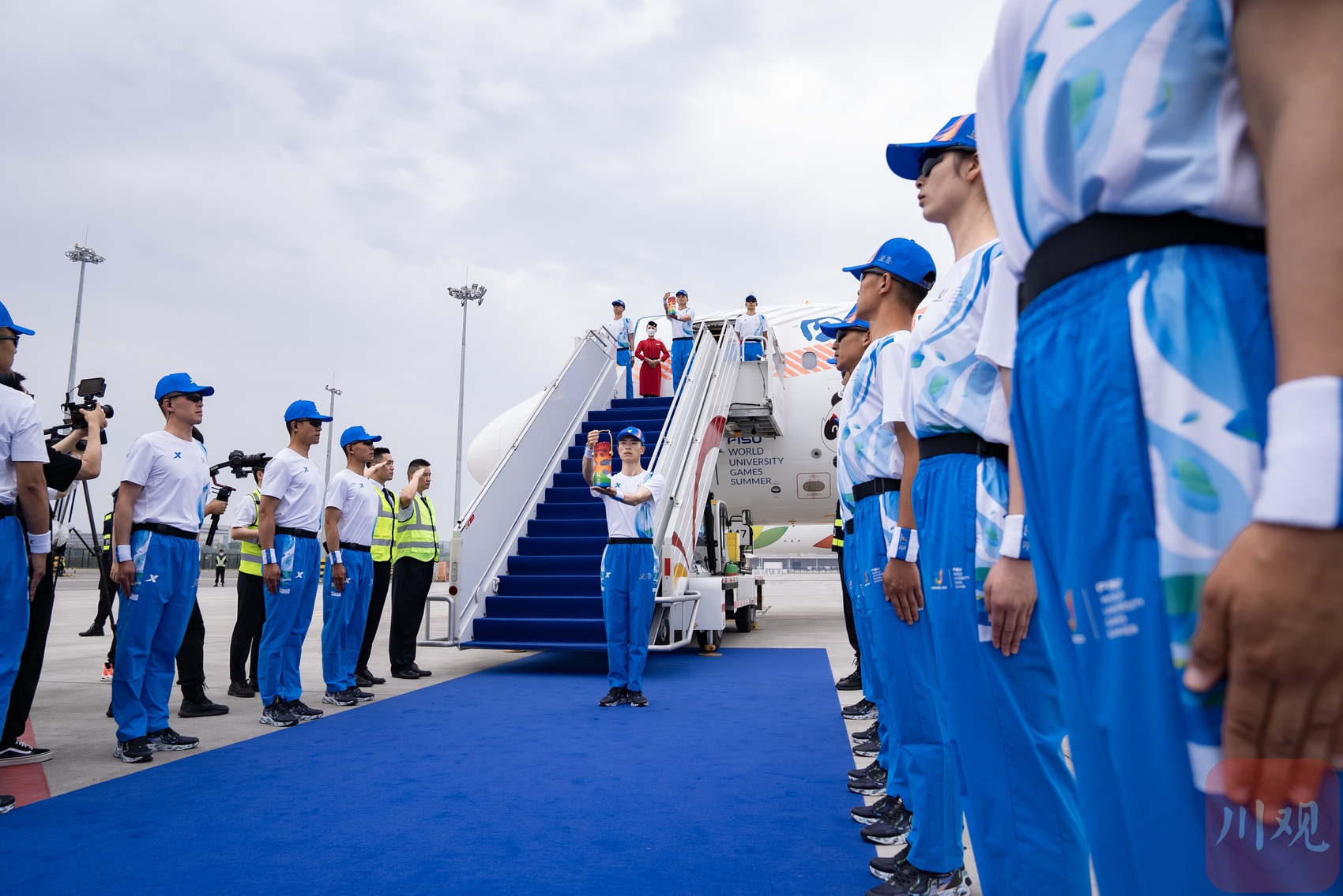 6月8日,第31届世界大学生夏季运动会火炬传递启航仪式在成都天府国际机场举行。在护卫队的守护下,成都大运会火种顺利登机。随后,搭载着成都大运会火种的“大运号”飞机启程前往北京。四川在线记者 李强