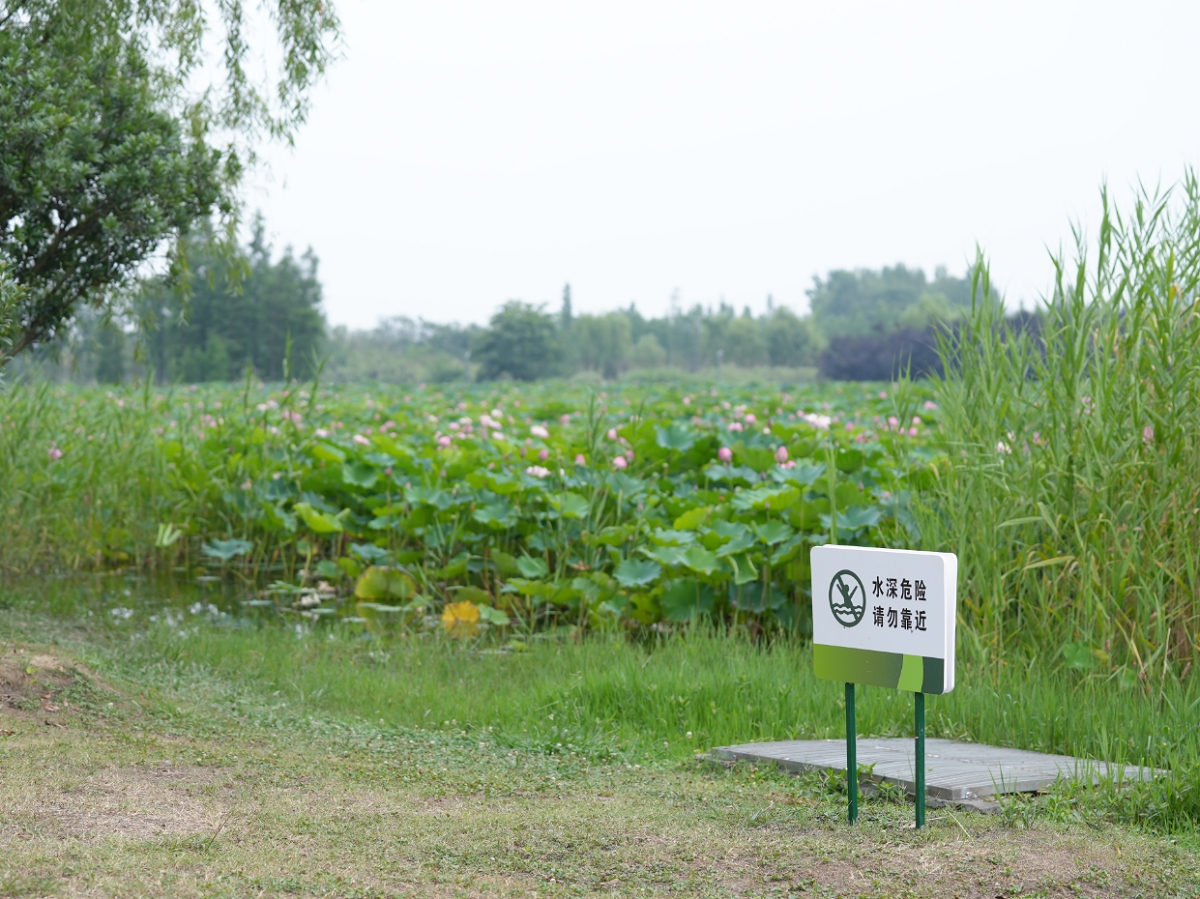 香城湿地公园的荷塘面积有一百余亩,每到夏天,连片的荷花盛开,亭亭玉立,很是漂亮,是著名的打卡地。记者在该公园看到,其内观景平台、部分临水步道、草坪区等区域都设置了“禁止游泳、钓鱼、戏水”、“水深危险请勿靠近”等警示标牌,然而这些警示牌挡不住摘花的人。