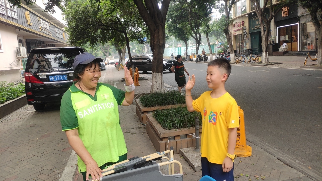 回家路上,沈先生告诉儿子,只要把活动的照片上传,他就可以拥有公益证书。小橙曦觉得还有比证书更重要的事,“今天做的这件事很有意义,确实是实实在在帮助了环卫工人,看着那阿姨很开心的样子,我也很开心。”