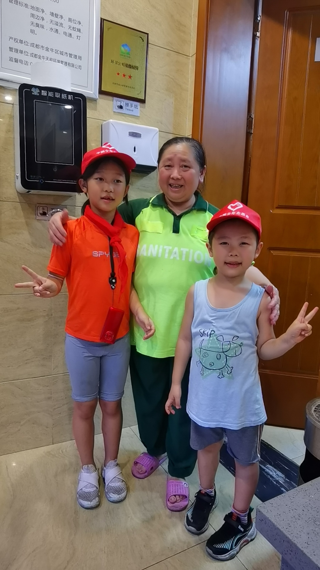 邓淳尹:这次我和5岁的弟弟邓琦耀一起参加了活动。环卫工人是城市的奉献者之一,环卫工人收入低,工作时间长,因此他们也格外需要来自社会的爱心和温暖,这次能和弟弟一起送上我们的爱心,真的特别高兴。