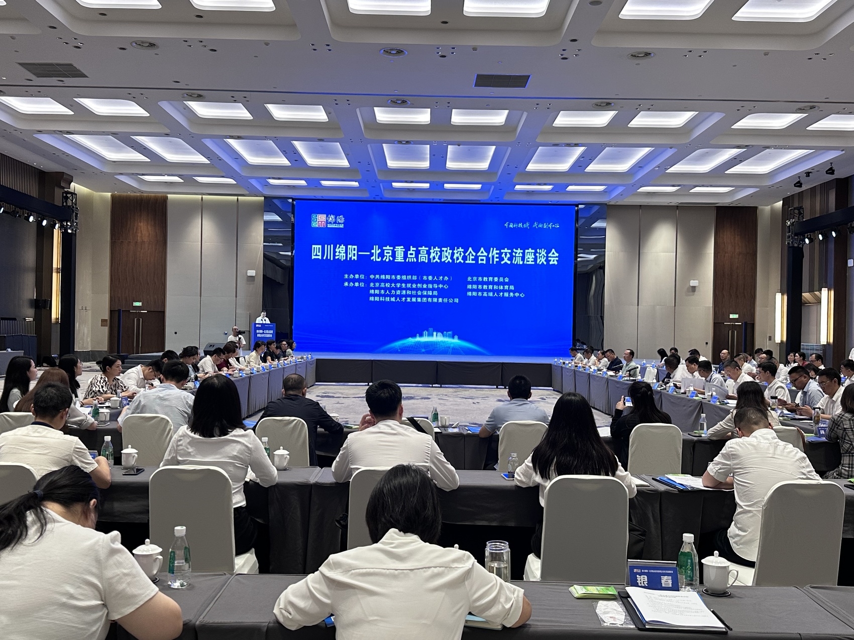 7月3日,四川绵阳—北京重点高校政校企合作交流座谈会在绵阳举行。来自北京市教委、北京高校大学生就业创业指导中心及包括北京航空航天大学、中央财经大学、北京林业大学、中国科学院大学等在内的16所重点高校学生就业创业工作负责人来到绵阳,话题锁定“人才工作”:如何更好了解绵阳发展所需,从而优化高校毕业生就业举措,深化人才引进培养合作。