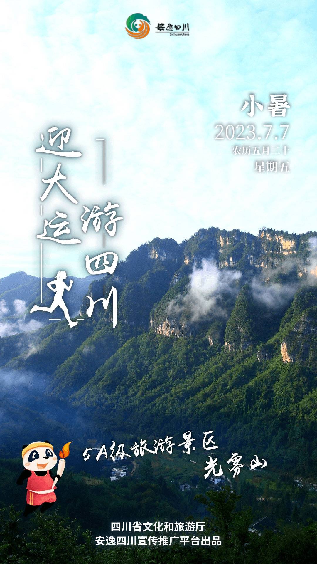 7月7日,星期五。今天安逸四川日历海报“迎大运、游四川”走进光雾山,置身云缭雾绕之境。