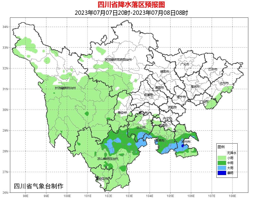 盆地大部多云间晴,其中达州、广安、宜宾、泸州、乐山、雅安6市多云间阴有阵雨或雷雨,局部中到大雨,个别暴雨;阿坝州东部多云间晴,川西高原其余地方阴天间多云有阵雨或雷雨,其中甘孜州南部有中雨,局部大雨;攀西地区阴天有阵雨或雷雨,雨量普遍中到大雨,凉山州东北部局地有暴雨。