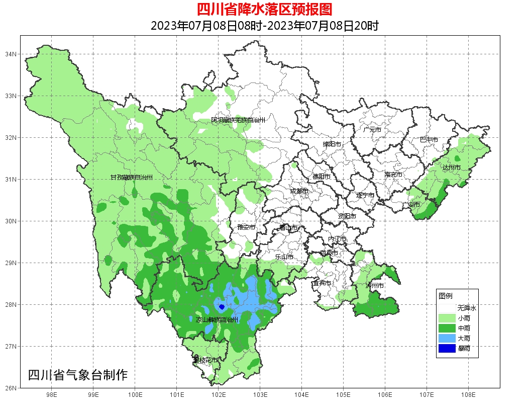 凉山州:西昌市、会理市、木里县、盐源县、德昌县、宁南县、普格县、布拖县、金阳县、昭觉县、喜德县、冕宁县、越西县、甘洛县、美姑县、雷波县