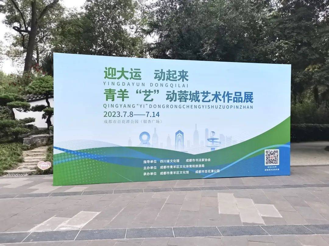 炎炎夏日,不妨走进公园,在葱郁绿植里看一场“蓉”味十足的展览。7月8日,第31届世界大学生夏季运动会(以下简称成都大运会)开幕前夕,由四川省文化馆、成都市书法家协会指导,成都市青羊区文化体育和旅游局主办,成都市青羊区文化馆、成都市百花潭公园承办的“迎大运 动起来——青羊‘艺’动蓉城艺术作品展”在成都市百花潭公园银杏广场开展。