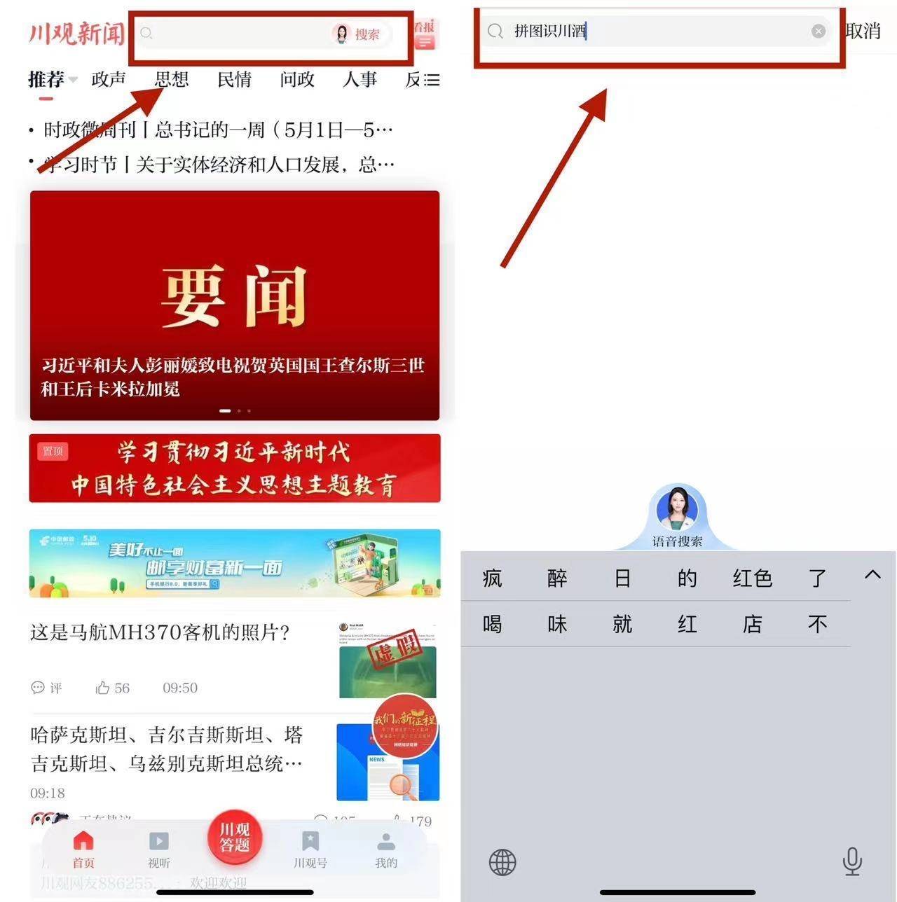 3、在川观新闻首页顶部搜索框输入“拼图识川酒”,点击活动链接即可参与。