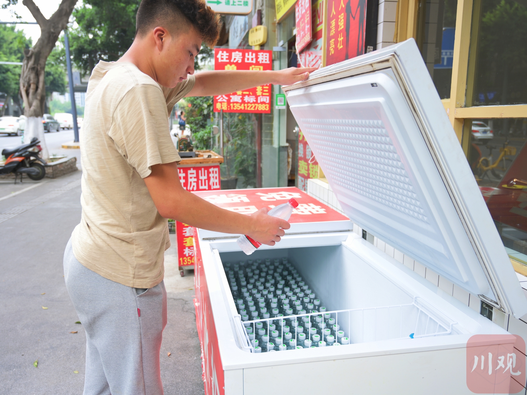 在成都高升桥东路一家火锅店门口,一个2米长的爱心冰柜很醒目。火锅店的老板娘赵春艳说,2017年的夏天,“爱心冰柜”还只是一张小桌子。爱心冰柜的出现,是为了方便附近的环卫工人喝水。