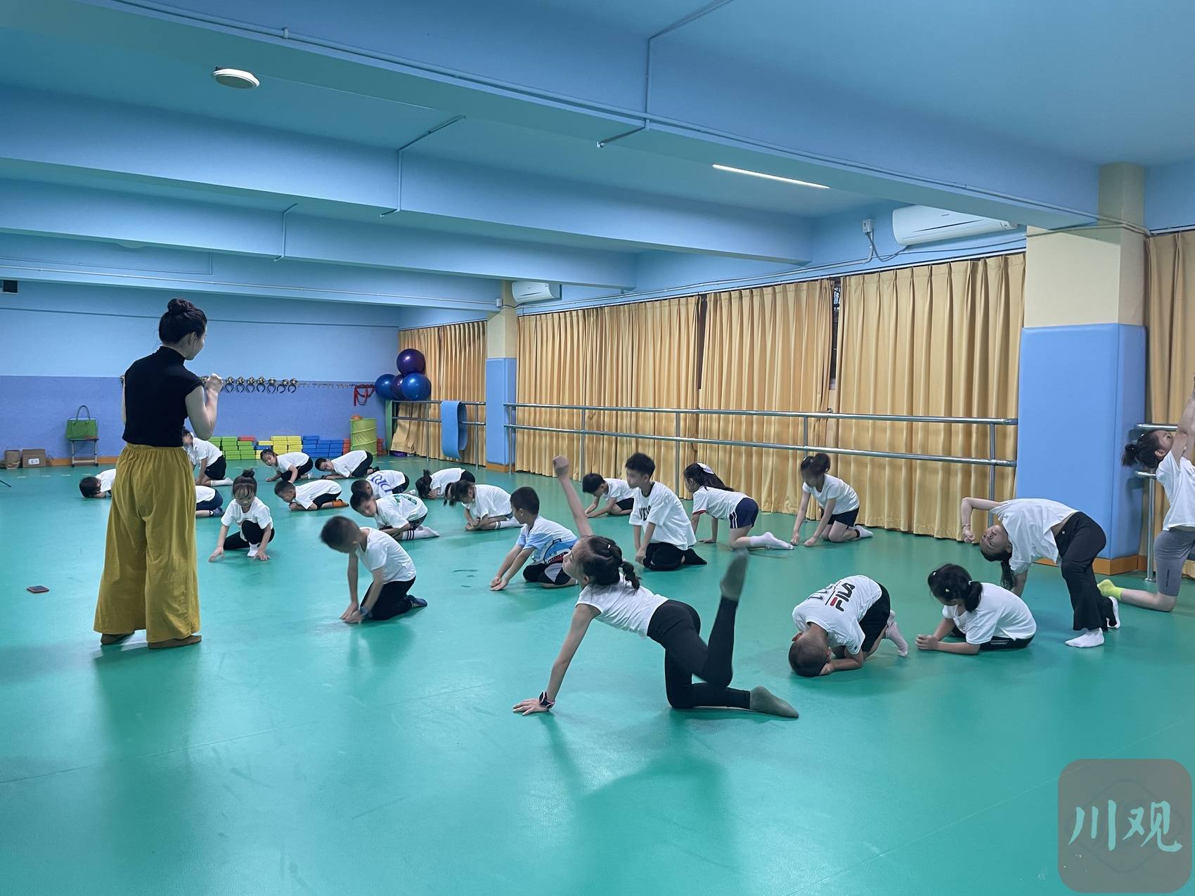 据悉,参加艺体托管的学生有300余人,“考虑到暑假天气炎热,艺体课程每天早上8点半开始10点结束。”肖惠云介绍,在成都市金沙小学A区,暑假期间的艺体托管主要包括足球、篮球、乒乓球、气排球等球类运动课程以及舞蹈、美术等艺术课程。