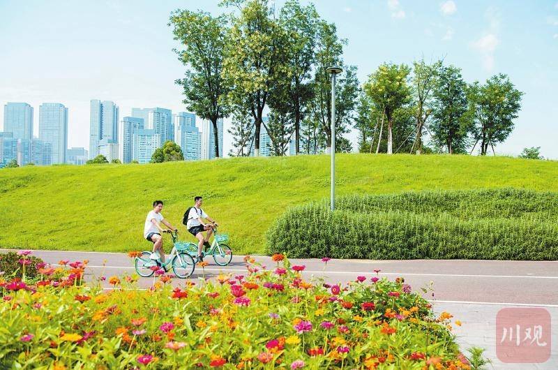 7月15日,市民在成都绿道上骑行。