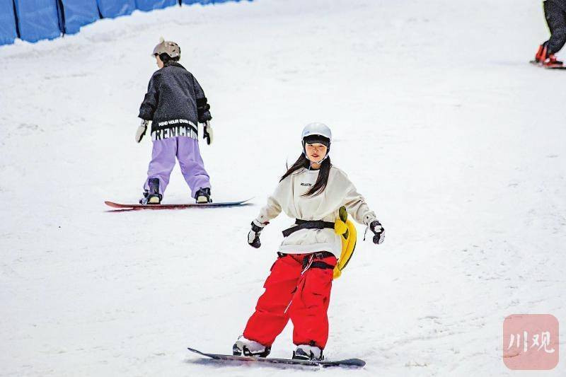 7月10日,重庆市民穿上滑雪服,在沙坪坝区的室内滑雪场体验反季节冰雪运动带来的乐趣。