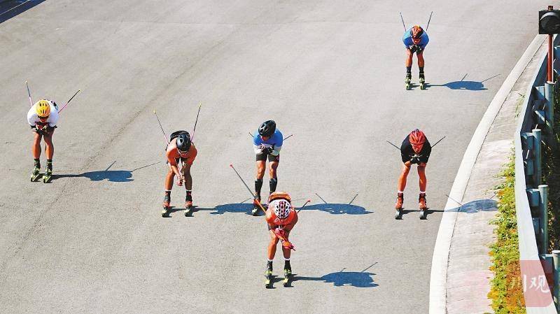 7月11日,一群年轻人在重庆万盛经开区黑山旅游度假区进行越野滑雪(滑轮)现场竞技,享受飞驰的欢乐。