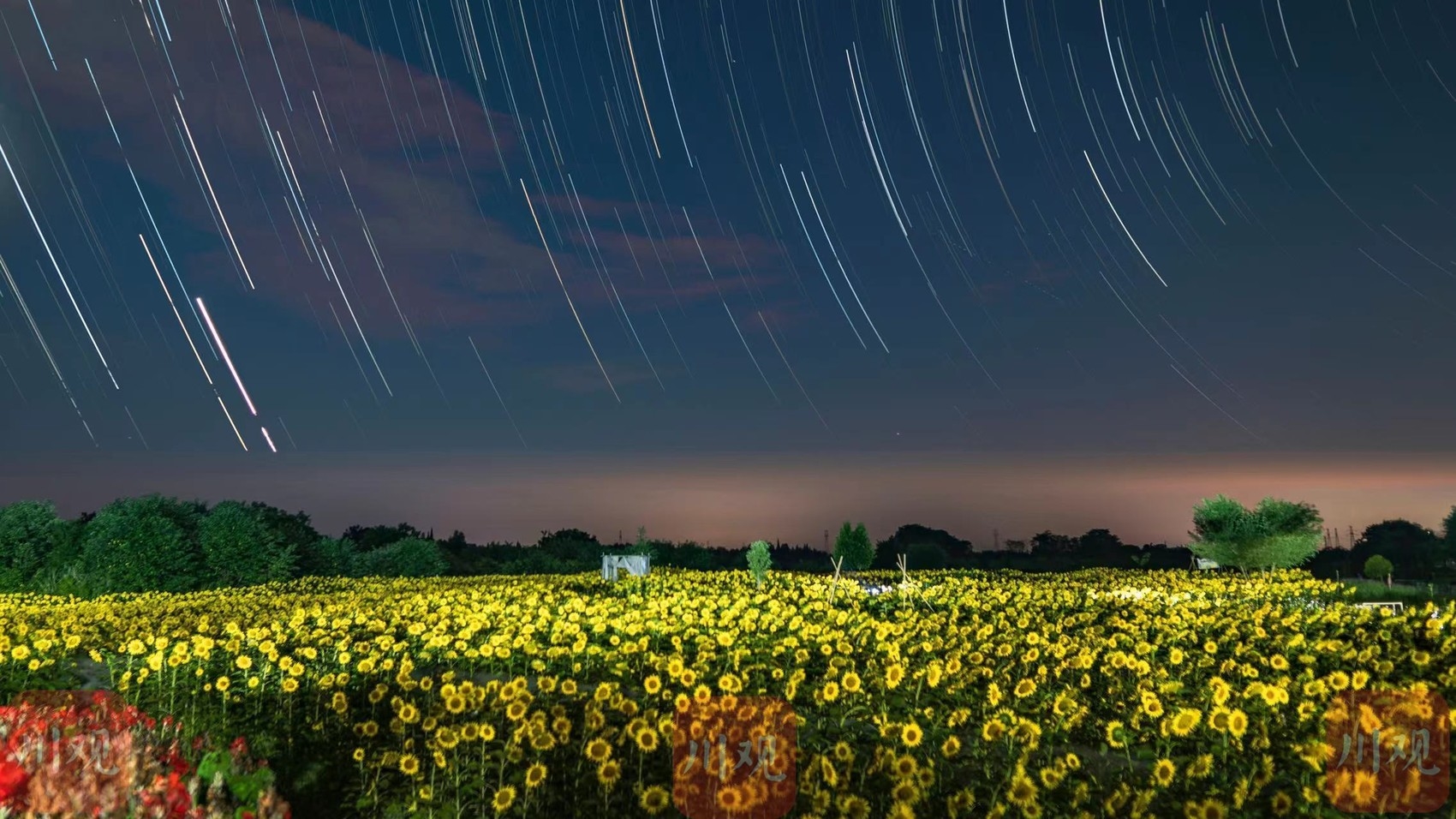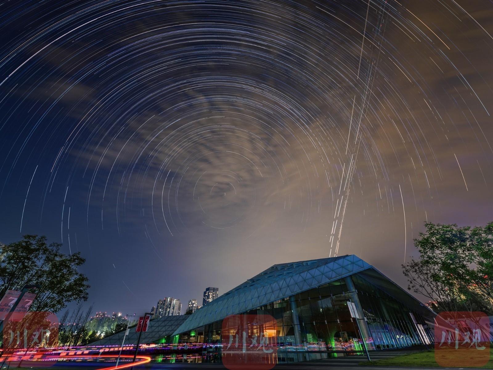 盛夏时节,连星空都要为“雪山下的城市”增添一抹璀璨的亮色。C视觉签约摄影师田相和,7月18日在成都温江星空公园内,凌晨0点至5点,连续拍摄五个小时,延时记录下星空美景,1269张照片堆栈连点成线,生成一张像唱盘一样的星轨图。