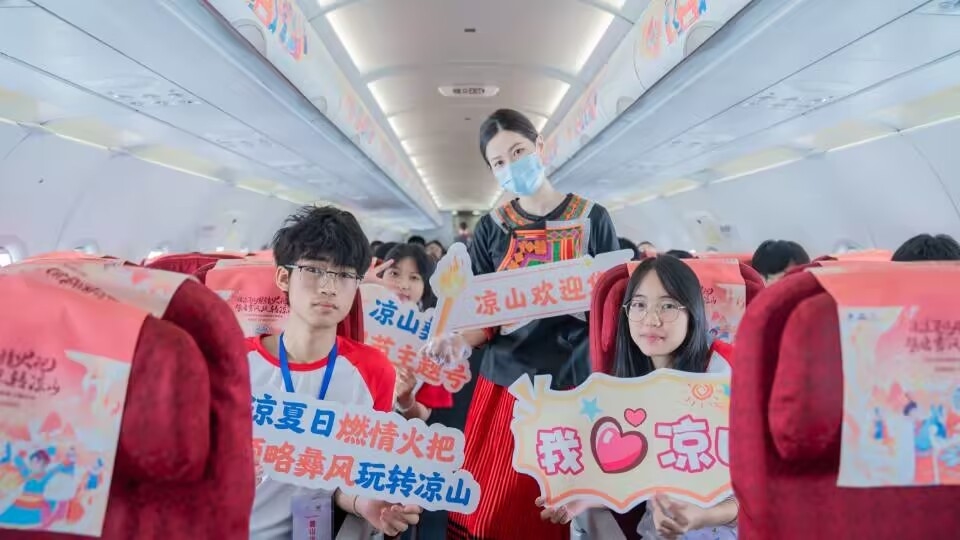 彝海结盟地、五彩大凉山。2023年7月20日9时05分,湖南航空A67771航班从长沙黄花国际机场启航飞往成都天府国际机场,这标志着凉山彝族自治州冠名的“凉山彝族火把节”主题航班正式首飞。
