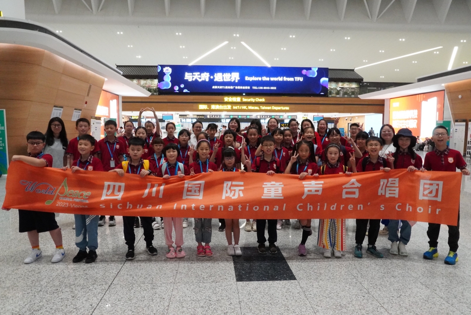 川童全体参赛团员在成都天府国际机场行前合影。