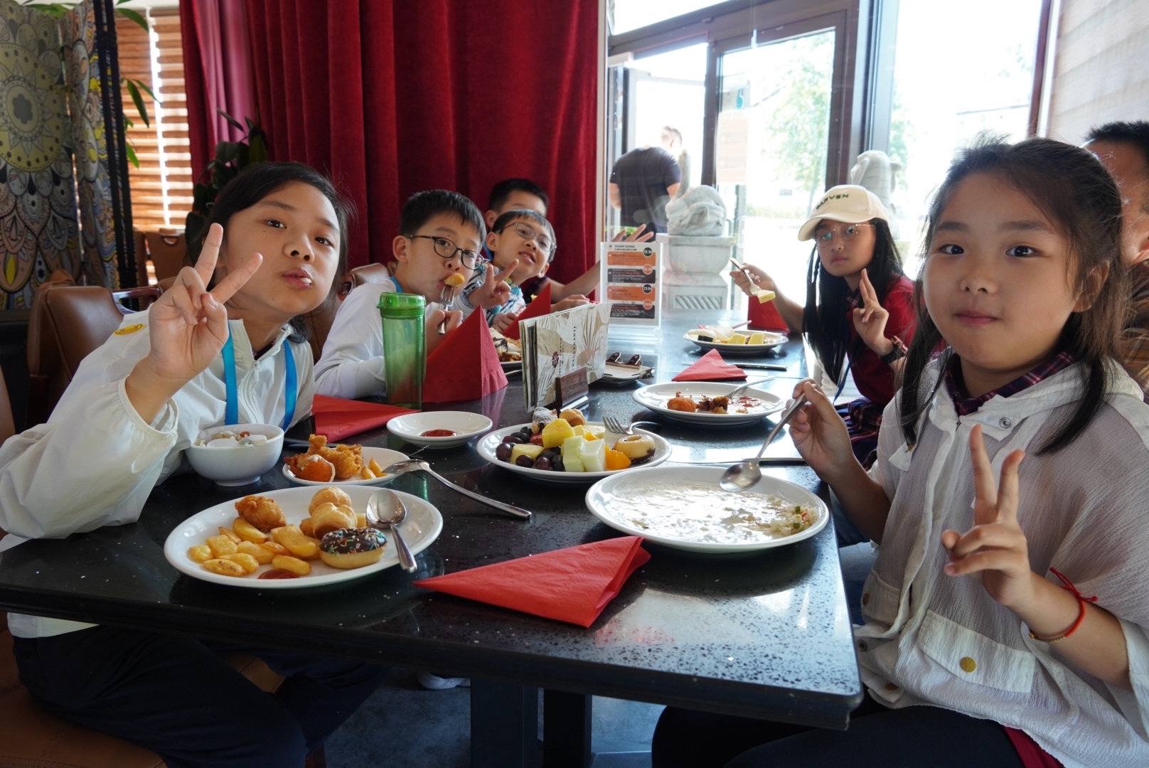 孩子们品尝当地特色美食。
