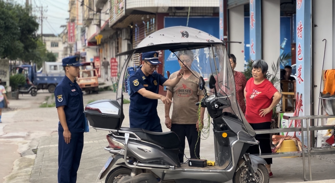 消防员向群众讲解飞线充电危害。 南充消防供图