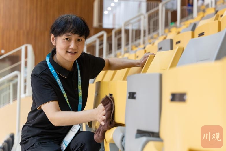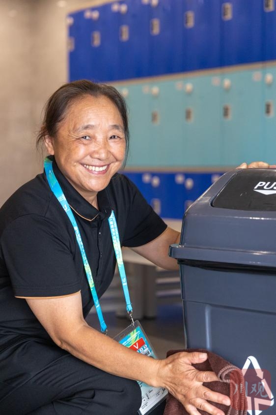 7月21日,龙泉驿区龙泉中学篮球训练中心的保障人员们全力以赴,用专业的态度、饱满的热情、青春的笑脸,迎接来自世界各地的宾朋,为大运会贡献保障力量。