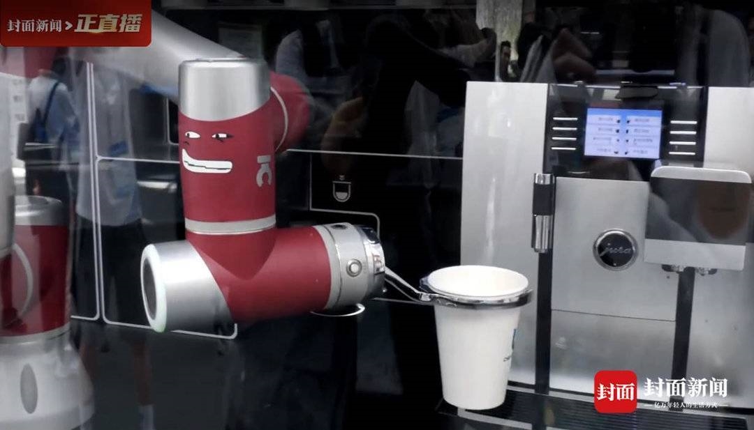 磨粉、过滤、注水、冲泡、拉花…在运动员餐厅和大运村欢迎中心,智能无人咖啡机尤其引人注目。只见两只“机械咖啡臂”灵活又稳重,短短90秒时间内,一杯咖啡便制作完毕。该产品的相关负责人介绍,在成都大运村内共设置了8台智能无人咖啡机,咖啡机不仅可制作美式、拿铁、卡布奇诺等多种口味,还可自选冷热,并对村内所有客群免费开放。