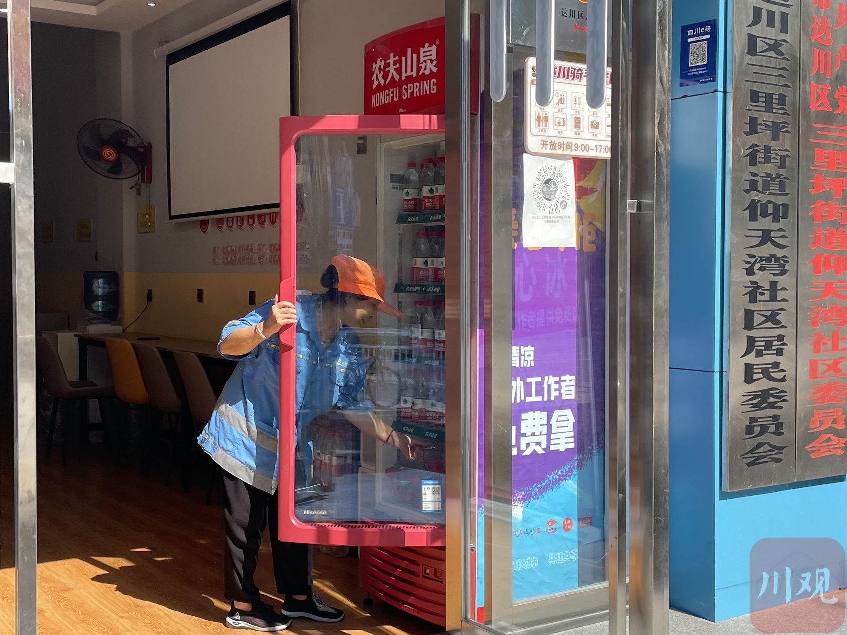 “每天要喝好几瓶水,‘爱心冰柜’免费供水,感觉很暖心。“当天下午3时许,达川区三里坪街道仰天湾社区党群服务中心,快递小哥周国均擦了擦额头的汗,从“爱心冰柜”中取出一瓶水大口喝了起来,满心欢喜。