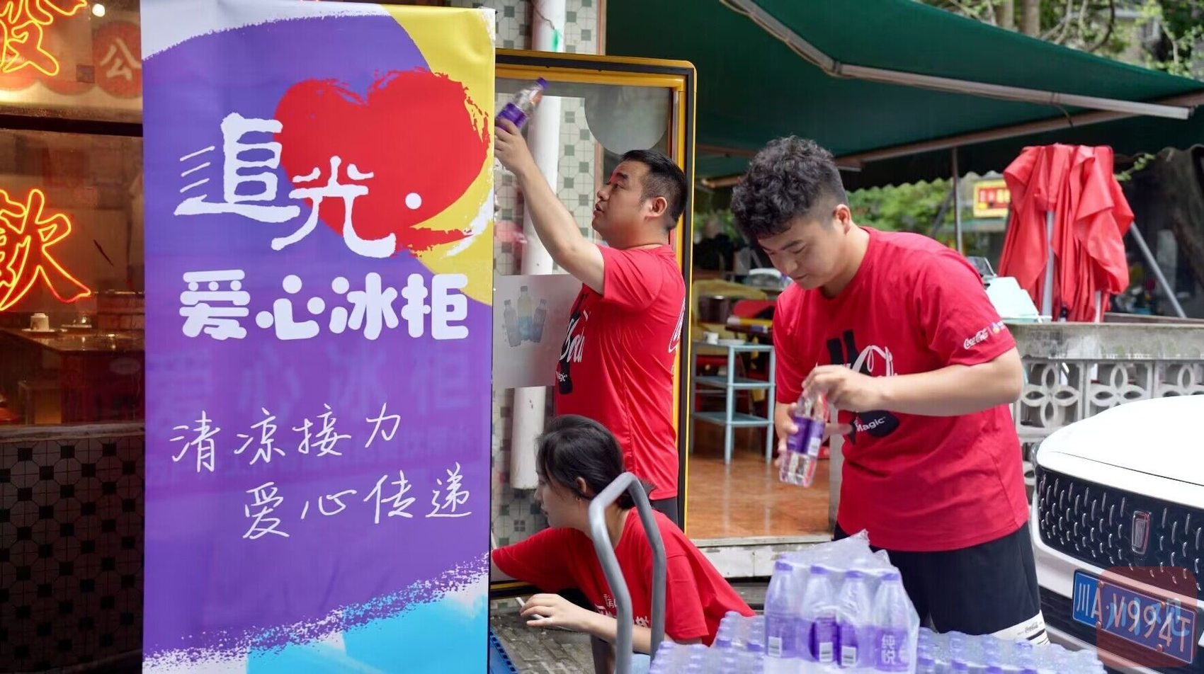 当天上午10点半左右,2000余瓶“爱心水”送至该店。该点位水和冰柜均由中粮可口可乐四川公司支持提供。“在每年温度最高的一段时间,公司都会组织为环卫工人送清凉活动。”该公司志愿者朱怡洁说,希望通过这个“爱心点”,服务到更多的人。