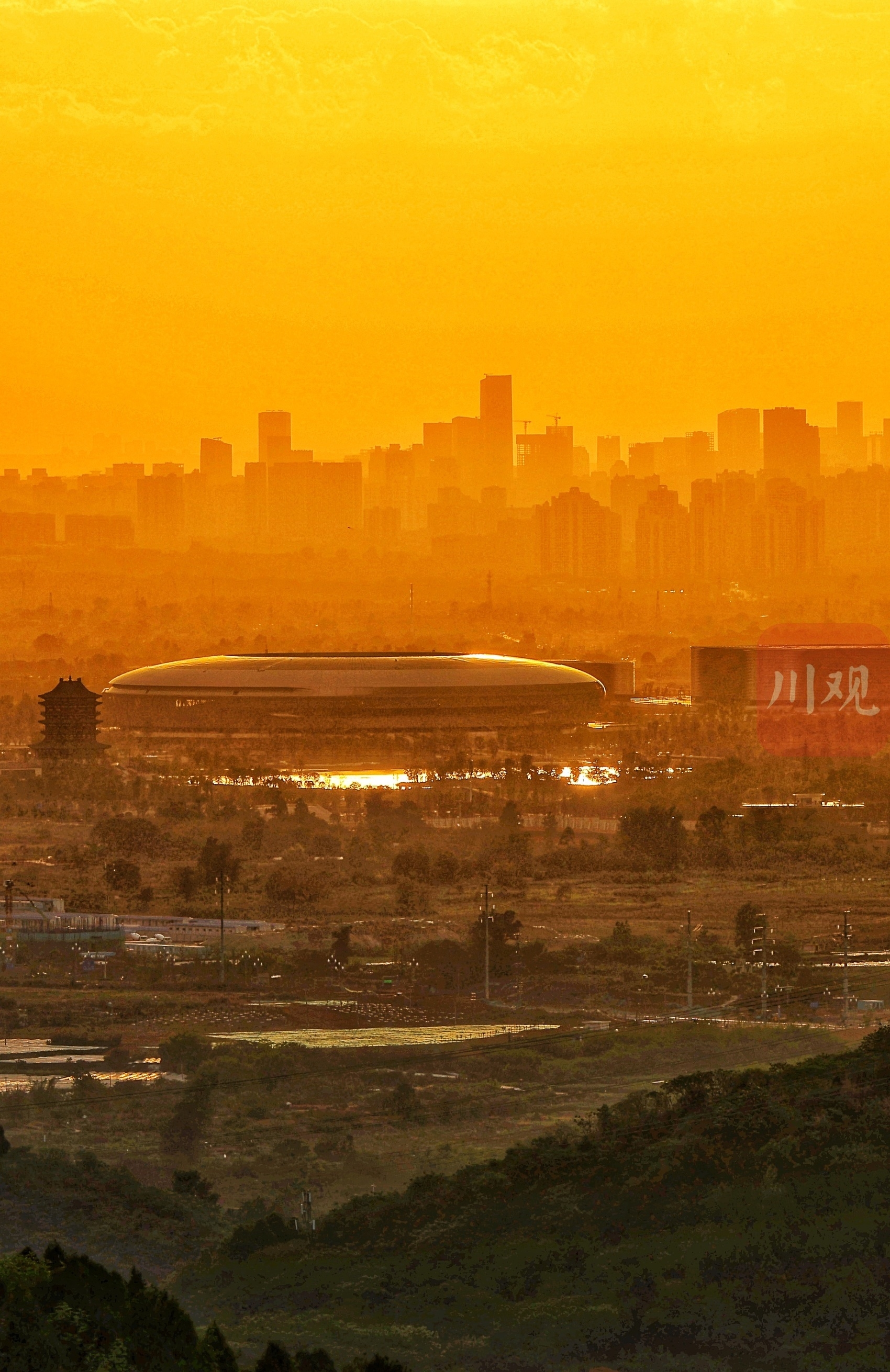 晚霞中的成都大运会主场馆。7月28日晚,成都第31届世界大学生夏季运动会开幕式将在此举行。华小峰 摄