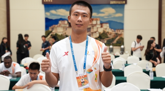 7月25日下午,成都第31届世界大学生夏季运动会火炬传递成都站(第五日)火炬手培训会上,四川在线记者见到了第62棒火炬手,成都理工大学优秀学生代表孙宇阳。