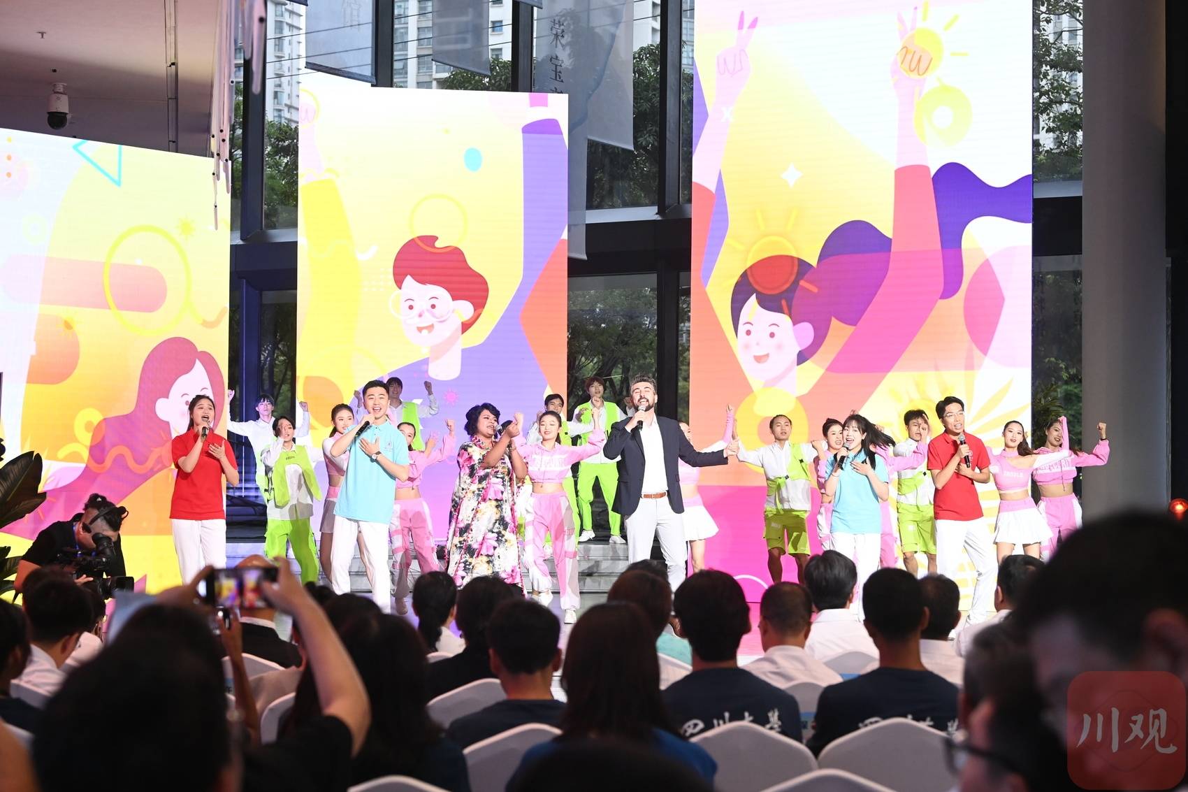 启动仪式当晚,歌舞《Panda 之城》融入川剧《裁衣》元素,伴随着电子音乐伴奏,孩子们天真无邪的表演让大家瞬间进入成都烟火气的生活氛围中。青年歌手潘韵淇演唱《踏破风的少年》展现着青春新潮的一面。京剧国家一级演员杨扬与游戏《原神》跨界,中国的箜篌奏出圣桑的乐曲,余音绕梁、韵味十足。