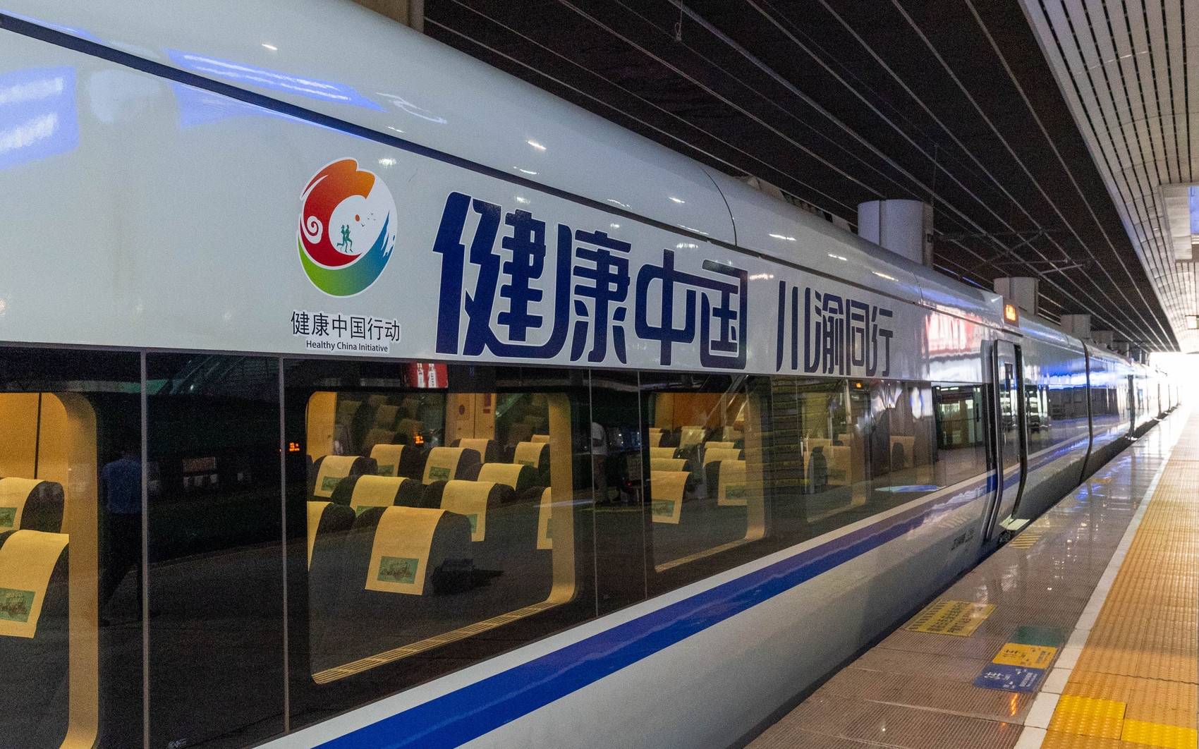 成都东站于6月27日首发“健康中国川渝号”主题动车。黄潇 摄
