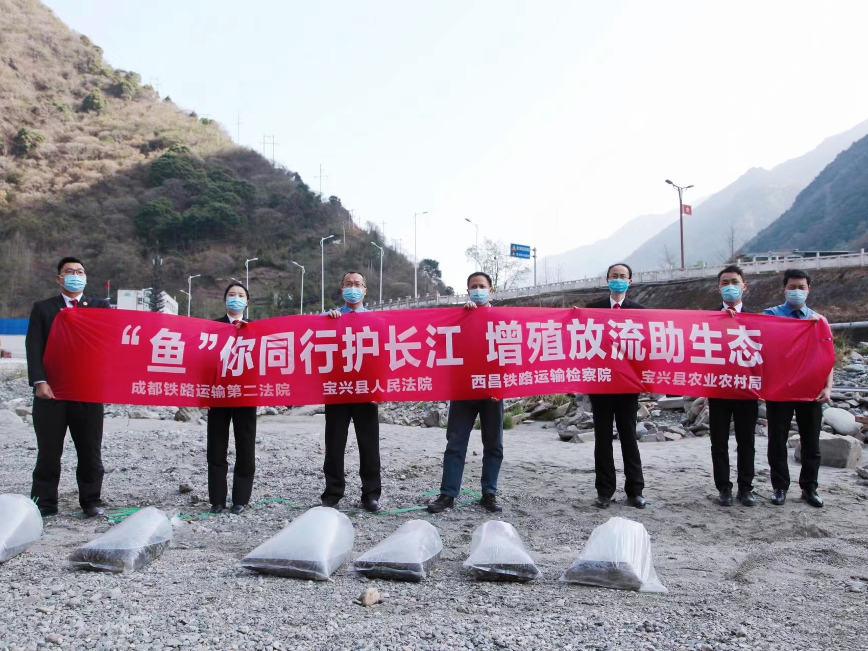 成铁两级检察院与法院共同开展增殖放流活动。四川省人民检察院成都铁路运输分院供图