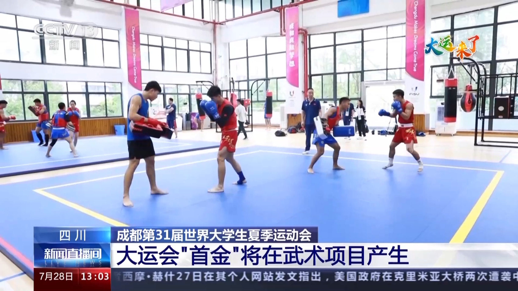 为了在赛场上有更出色的表现,大运会运动员们正在各个场馆积极训练备战。本届大运会的首枚金牌将在武术项目中产生,运动员们准备得怎么样?我们跟随记者的镜头去现场看一看。
