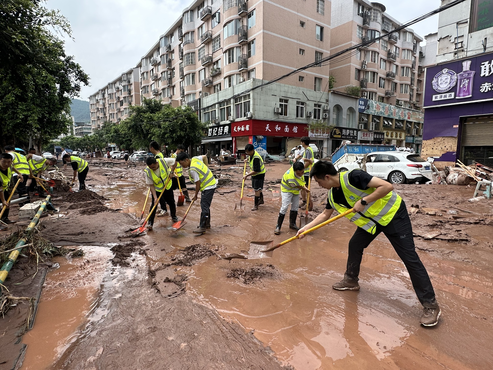 中建三局四川分公司古蔺职校项目投入救灾人员60余人。中建三局供图