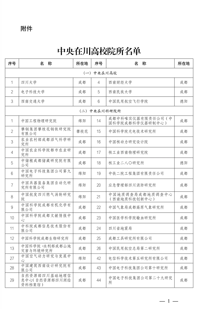 附:中央在川高校院所名单