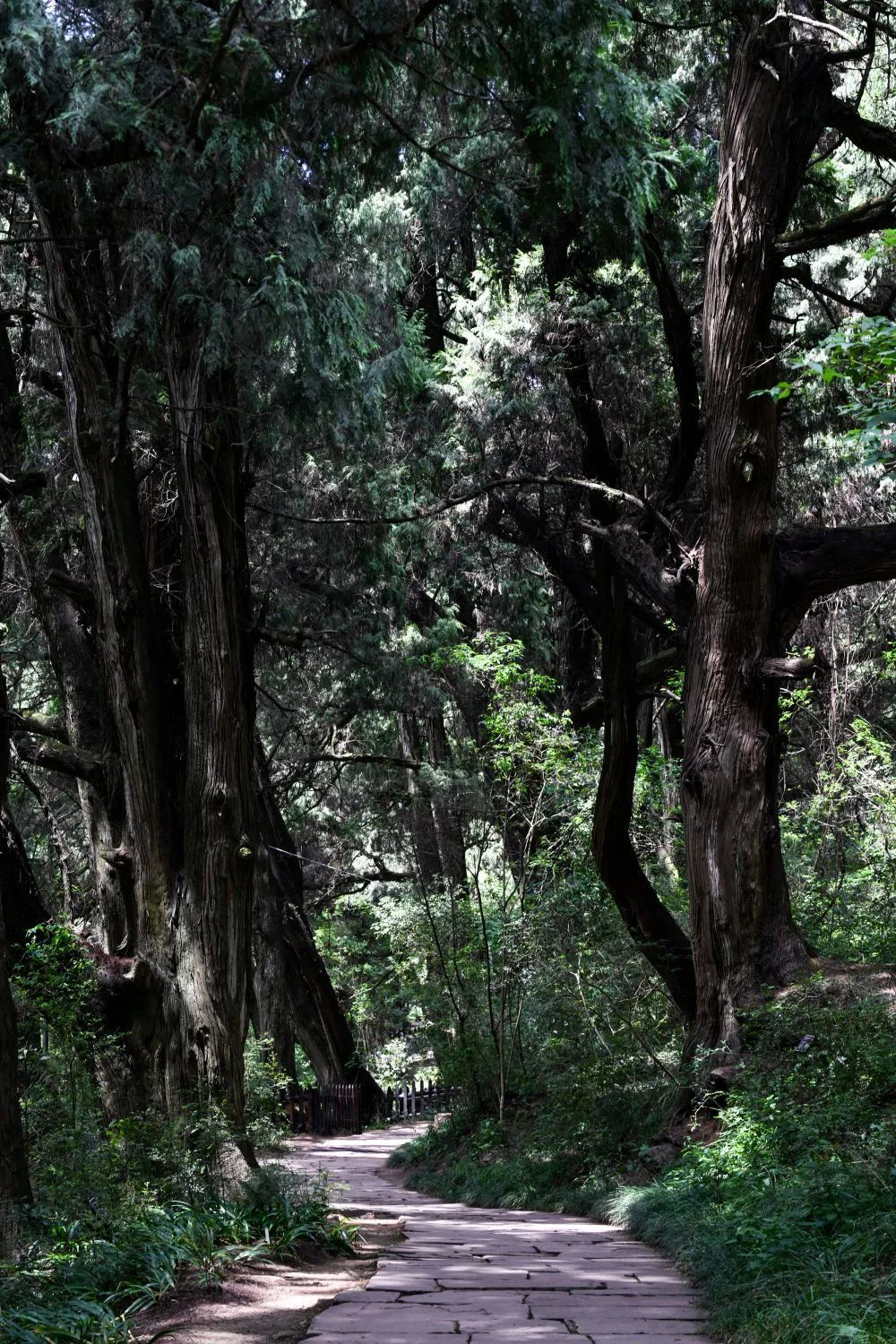 桧柏阴阴解留客,翠云廊畔晚风吹。