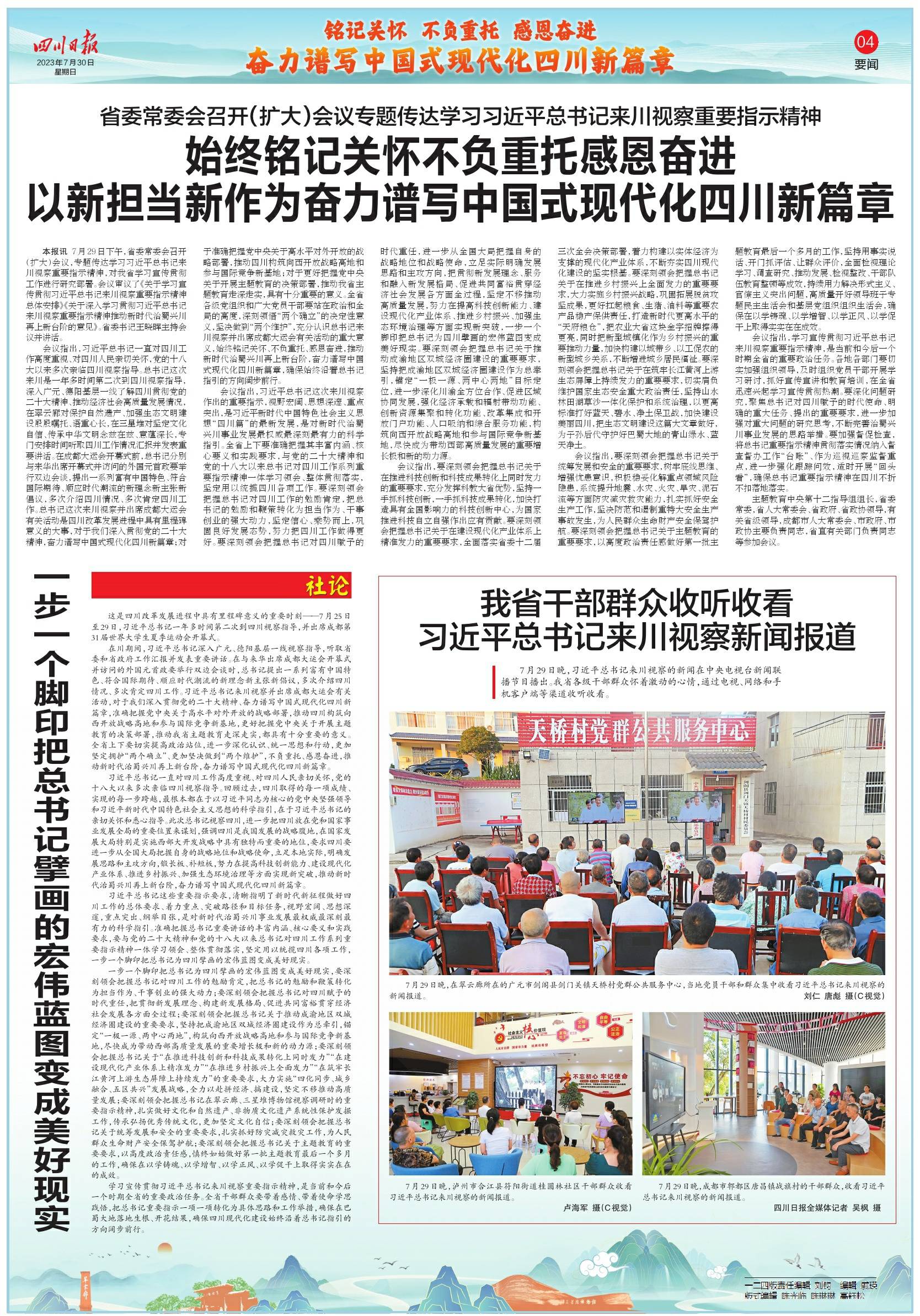 《省委常委会召开(扩大)会议专题传达学习习近平总书记来川视察重要指示精神 始终铭记关怀不负重托感恩奋进 以新担当新作为奋力谱写中国式现代化四川新篇章》(点击此处查看报道)